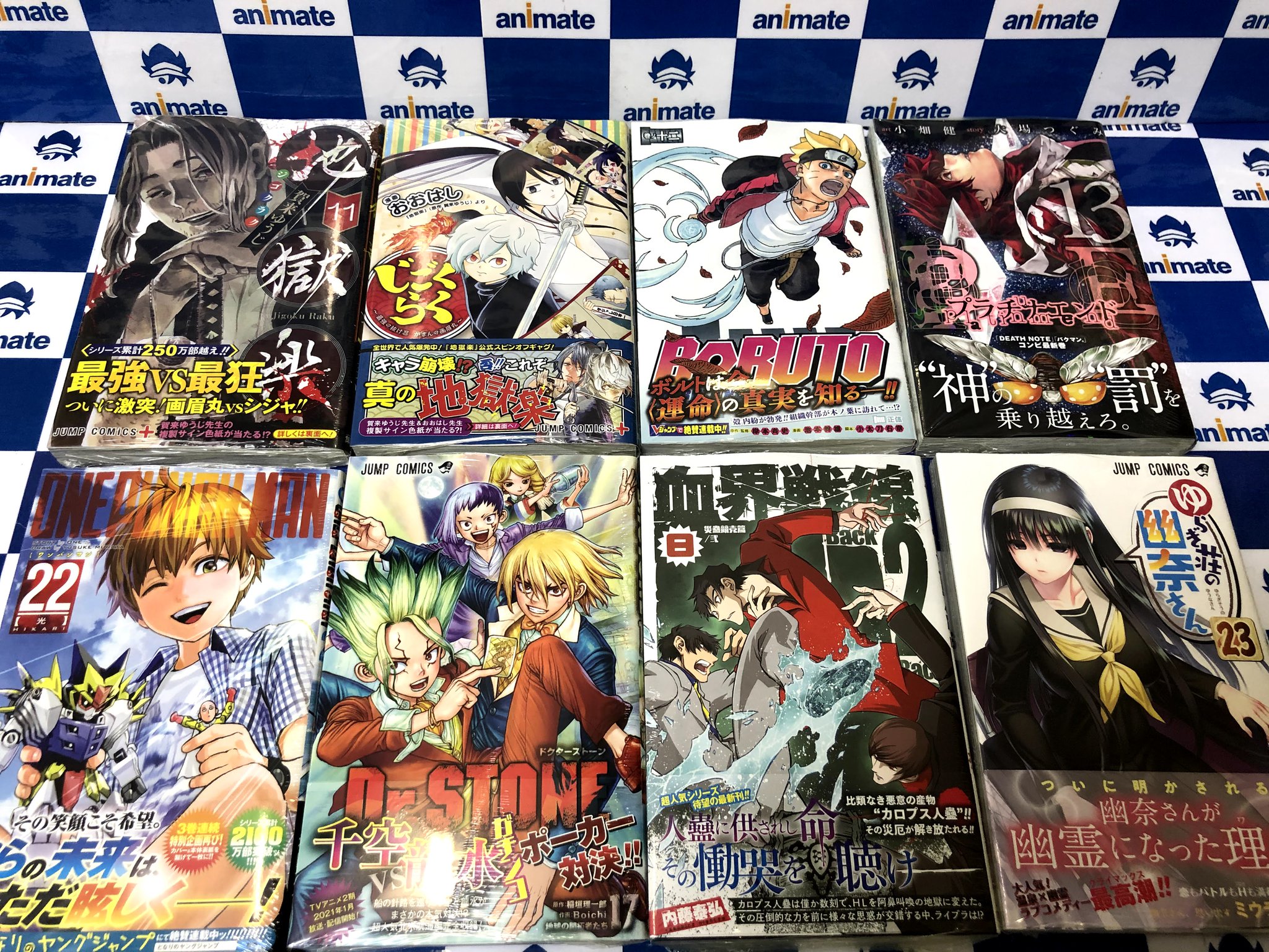 Uzivatel アニメイト大阪日本橋 Na Twitteru ジャンプコミックス発売中ーーーッ ワンパンマン 22巻 血界戦線back2back 8巻 Dr Stone 17巻 ゆらぎ荘の幽奈さん 23巻 地獄楽 11巻 プラチナエンド 13巻 あ
